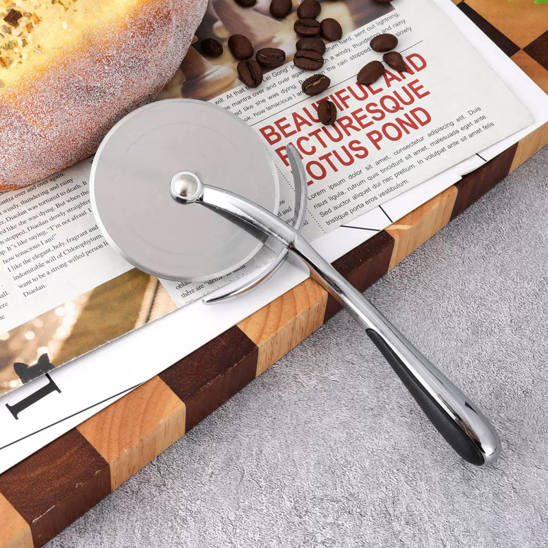Acest tăietor de pizza din aliaj de zinc rezistent este un instrument mic la îndemână pentru uz casnic și este însoțitorul perfect pentru prepararea pizza. Dispozitivul de tăiat pizza este mic, ușor și ieftin, făcându-l un tăietor de pizza pe care toată lumea își poate permite să îl folosească.