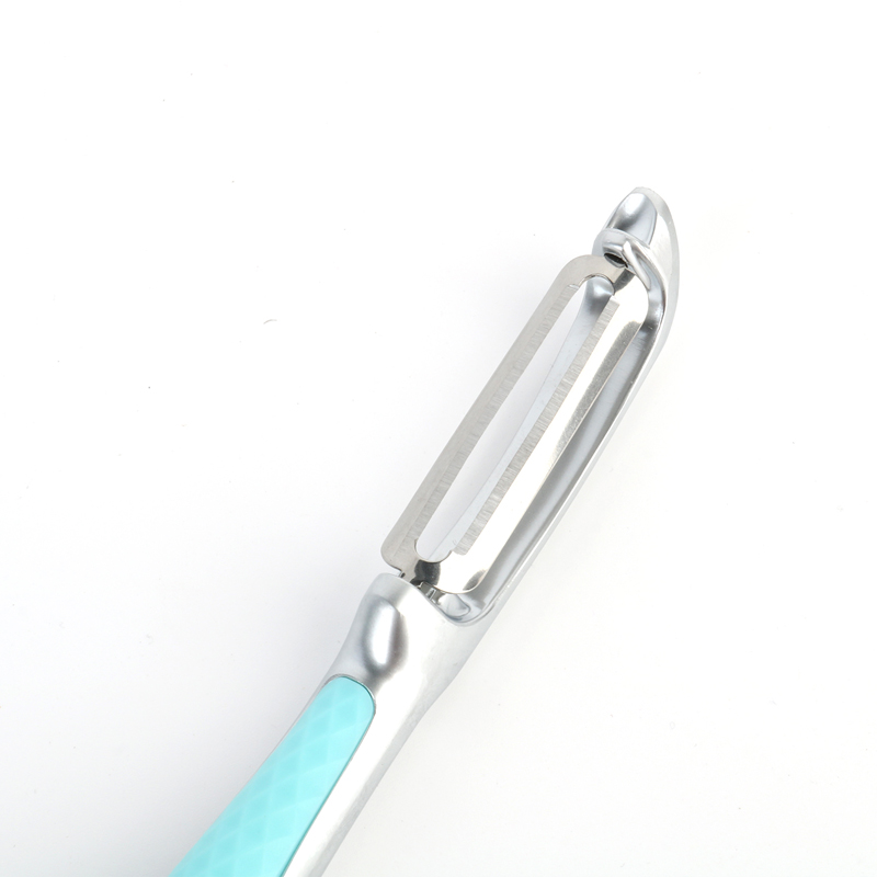 H542 este una dintre ofertele companiei noastre, un maner de curățat cu lamă dreaptă cu mâner drept. Spre deosebire de modelele tradiționale cu mâner drept, cu lame încrucișate, acest aparat de curățat cu lamă dreaptă cu mâner drept oferă o gamă mai largă de aplicații practice pentru consumatori, oferind o experiență mai cuprinzătoare și mai versatilă. imaginea ustensilelor de bucătărie și de luat masa. Îmbunătățește percepția vizuală și de calitate a acestor unelte, făcându-le să pară mai rafinate și premium. Spre deosebire de curelele tradiționale cu mânere lungi și subțiri, H542 are un mâner mai robust. Împreună cu culorile delicate și pastelate ale seriei Macaroon, completează frumos aspectul elegant și metalic. alte variante.