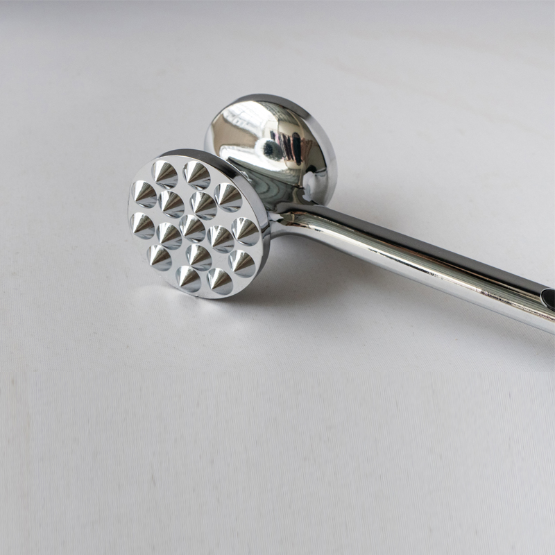 Acesta este un agent de intindere pentru carne din aliaj de zinc produs de Jinhua Hanjia Commodity Co., Ltd, fabricat folosind un proces integrat de turnare sub presiune. Suprafața metalului este lustruită cu atenție manual, iar întregul produs este supus unui proces de galvanizare ecologic și sigur. distribuția între partea din față și din spate a frângerii de carne este proiectată în funcție de raportul de aur, permițând utilizatorilor să lovească carnea cu un efort minim, bazându-se doar pe gravitatea capului ciocanului. Capul de frângere a ciocanului are două suprafețe diferite pentru diferite tipuri de carne. Tampoanele de plastic de pe ambele părți ale mânerului oferă confort pentru utilizare prelungită. costul în comparație cu modelele tradiționale cu mai mult de 13%. Este, de asemenea, foarte ușor de curățat, puteți pur și simplu să-l clătiți cu apă sau să folosiți o mașină de spălat vase.